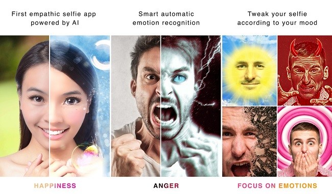 Emolfi is ridiculous and loads of fun. It’s the first empathic selfie that guesses your mood by your selfie and then adjusts the background with images of its own. So, if you’re happy, you’ll get bubbles and sunshine all around you, if you look angry or scared, you’ll get a background that looks like a horror movie like a spider crawling towards your face with your eyes animated towards it with a worried expression.