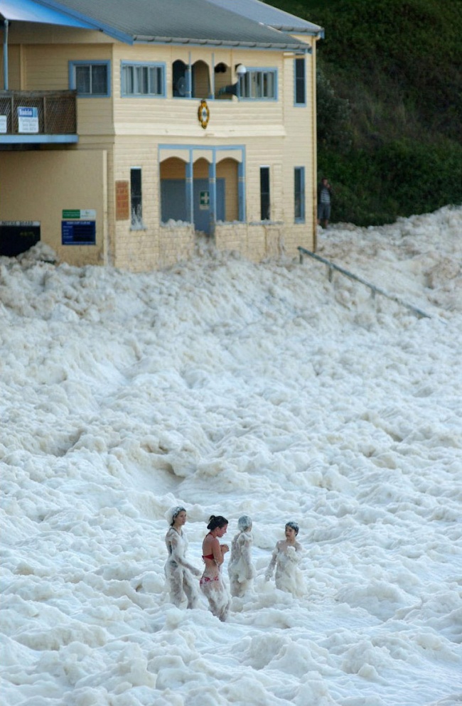 This foamy coast is on the shoreline of Sydney as the sea transformed foamy which engulfed the whole beach and nearby buildings. The foam was so light that people pulled it off by hands and watch it float away on the water.