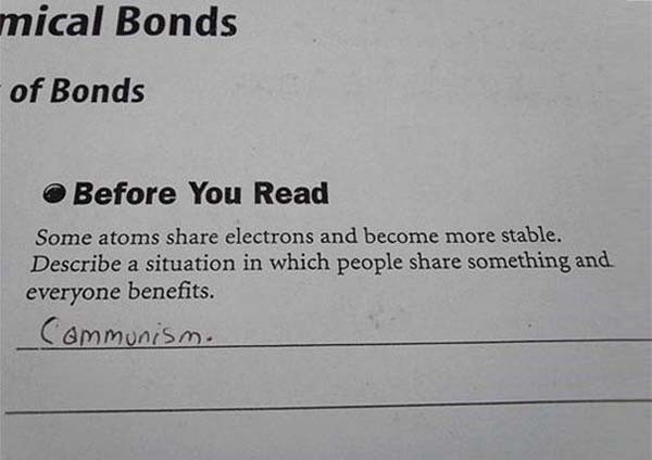 Kids today are smarter than you think. This particular teacher found out much to her amazement how adept and innovative students can be by viewing test questions from an entirely different perspective, needless to say, the results were hilarious. Read this one particular students answer to common test questions. He seems a real genius and his hilarious test answers will amaze you and make you ROFL.