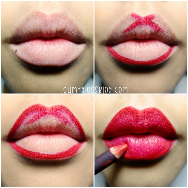Give If you need to put on lipstick, do it correctly. The way to do it is to first outline the lips in order to give them a certain shape. You can do it and then make a cupid’s bow as seen in the image below, to get everything mapped perfectly. Now outline the corners of your lips and then fill-in the remaining part with lipstick and connect the lines.