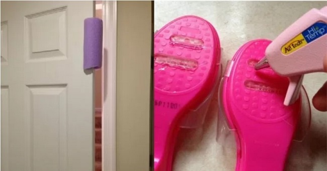 If your young-lings run the risk of having their fragile fingers caught between hinges and doors, it might benefit you to cut a sponge or a pool noodle, slice it through the middle and stick it on the door frame, so that the door does not shut hard.