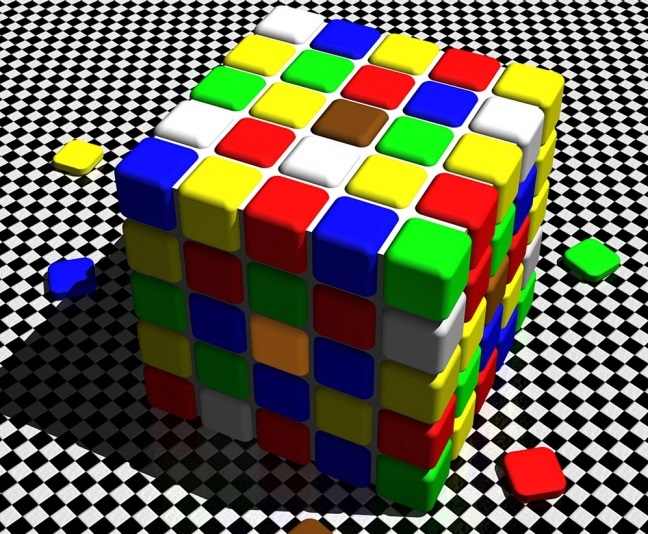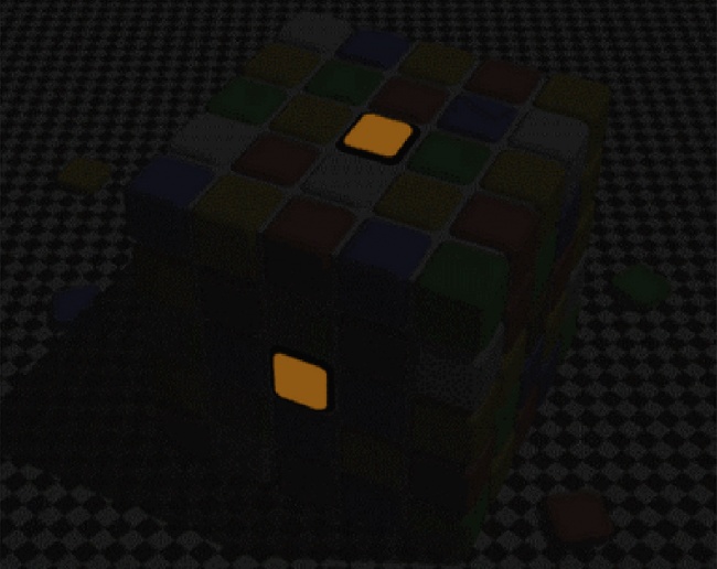 Find anything funny in this colorful contraption? You can see it has many colors and each color is vividly represented on the cube. However, there is a glitch in the matrix for you. If you look closely, you will see that the brown and the orange squares on the upper and front side of the cube are of the same color and shade.