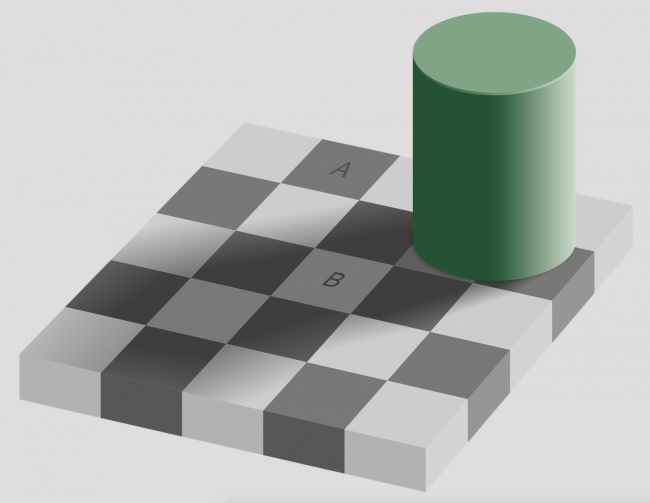 You can see two squares marked A and B and a cylinder kept on a chess board type figure. However, the two squares share something common in it. See carefully.
