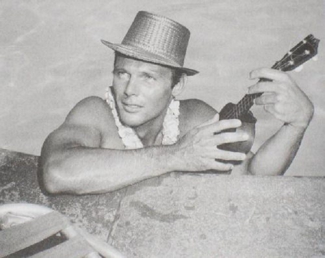 Adams movie debut was in Voodoo Island (1957) where he played a weather station operator. His role was unaccredited. He was also chosen to be the host of a two-hour weekday show with a diaper wearing chimp named Peaches. The show held in Hawaii was a kiddie program named the Kini Popo Show.
