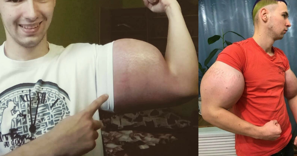 Take for example the Russian man Kirill Tereshin who in November did the crazy thing of injecting his arms with deadly bulking oil and developing 60 cm biceps. He is once again in the news and why?? Because his arms are about to fall off. The Russian Popeye may need to amputate his arms.