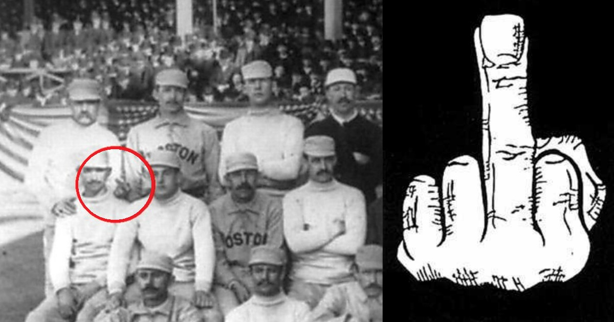 Anthropologist Desmond Morris says that the hand gesture could have reached the US through Italian Immigrants. The first photograph showing someone using the finger was in 1886 when the pitcher for Boston Beaneaters Baseball team showed the finger to rivals, the NY Giants. One early photograph shows a team member showing it to the cameraman.