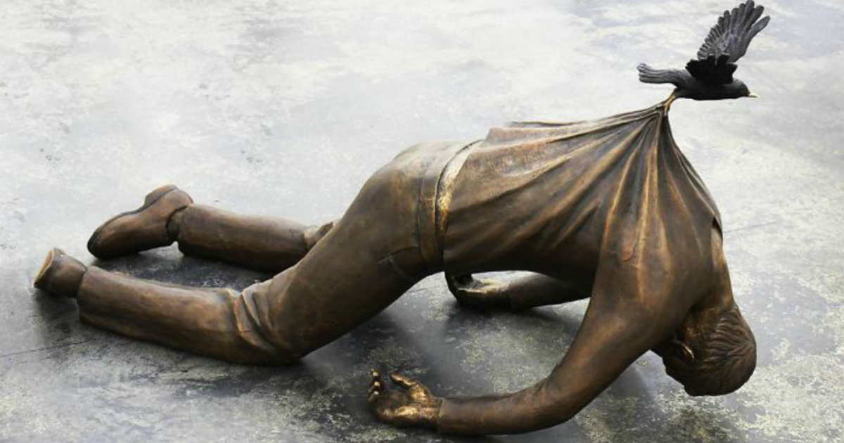 This is an amazing form of creativity. A man was seen standing on a podium but part of his body is broken. It surprises people with the balance that this sculpture is having.