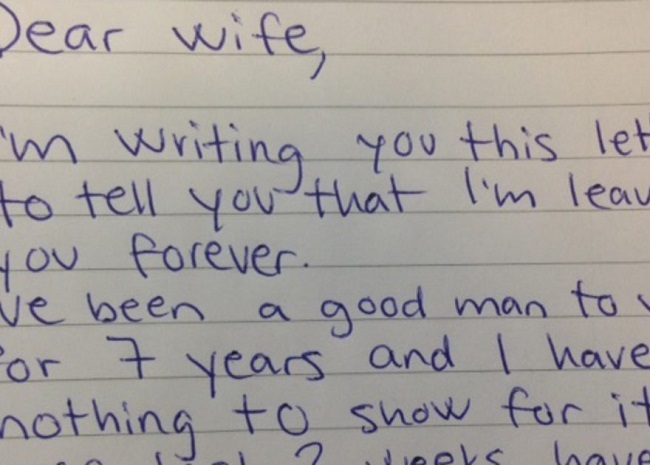 "And when you cooked my favorite meal, you must have gotten me confused with MY SISTER, because I stopped eating pork 7 years ago. About those new silk boxers: I turned away from you because the $49.99 price tag was still on them, &; I prayed it was a coincidence that my sister had just borrowed $50 from me that morning. After all of this, I still loved you & felt we could work it out. So when I hit the lotto for 10 million dollars, I quit my job & bought us 2 tickets to Jamaica. But when I got home you were gone. Everything happens for a reason, I guess. I hope you have the fulfilling life you always wanted. My lawyer said that the letter you wrote ensures you won’t get a dime from me. So take care." Signed, Your Ex-Wife, Rich As Hell & Free! Now, this was hilarious as hell. We are sure the husband kicked himself for writing that letter. He sure lost a smart and caring wife.