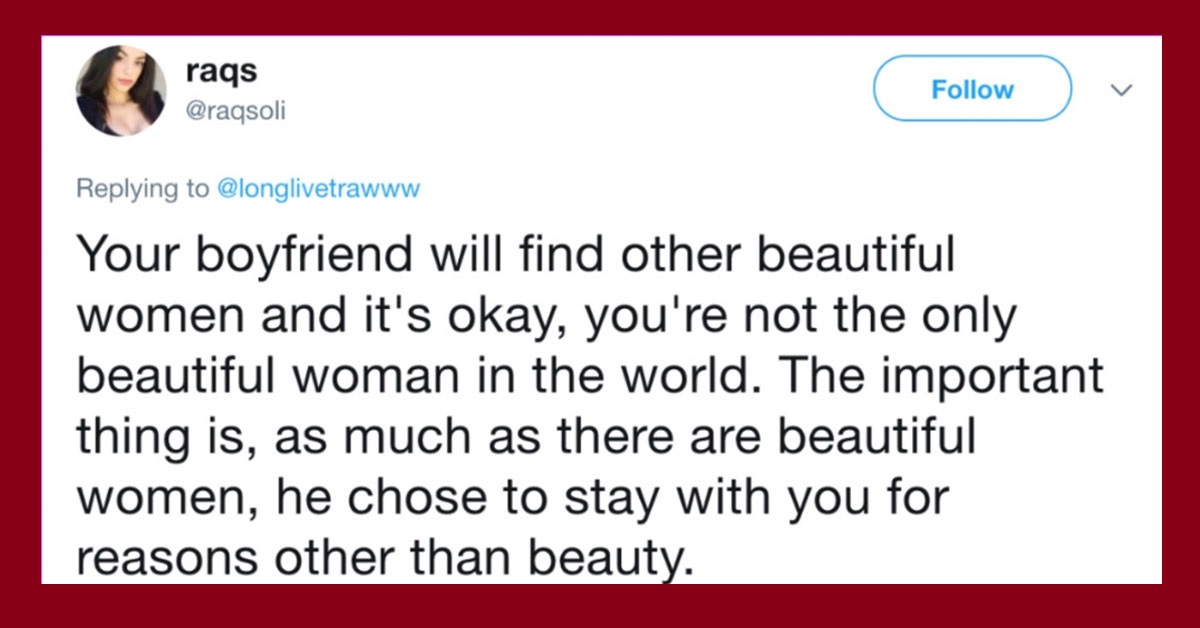 According to one Twitter user, if your partner wants to date some other guy or girl, you should allow them and not interfere in between. It’s very important in a relationship to show trust on your partner and if he/she loves you, one date won’t be able to affect your relationship at all.