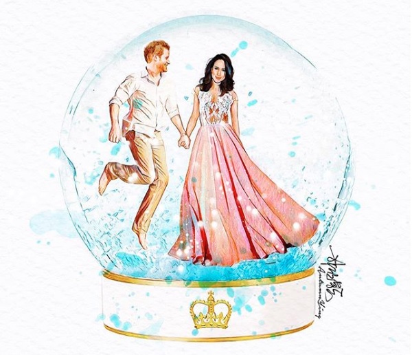The last picture depicts the newly wedded Prince Harry and Meghan inside a snow globe looking happy. This is another great example of how great an artist Autumn is. The work is incredible and the colors are magnificent.