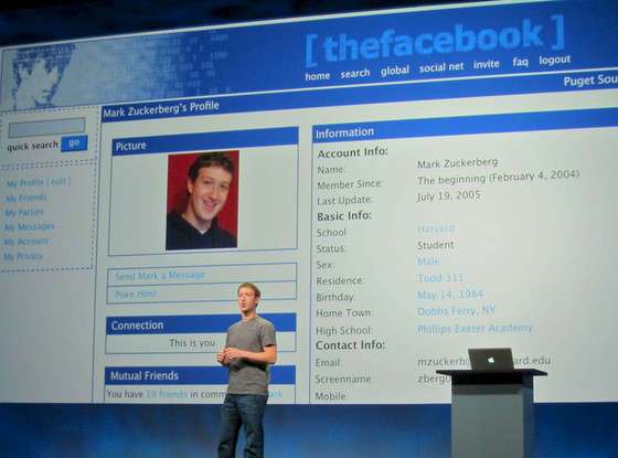 During that time the pages were minimalistic and notifications on your profile said “this is you”. Even updates always began with ‘is’ which always read, “Mark is mighty pleased”. “Mark is making millions” and so on. This is a typical 2005 Facebook profile page shown by Zuckerberg at a conference. It still resembled MySpace.