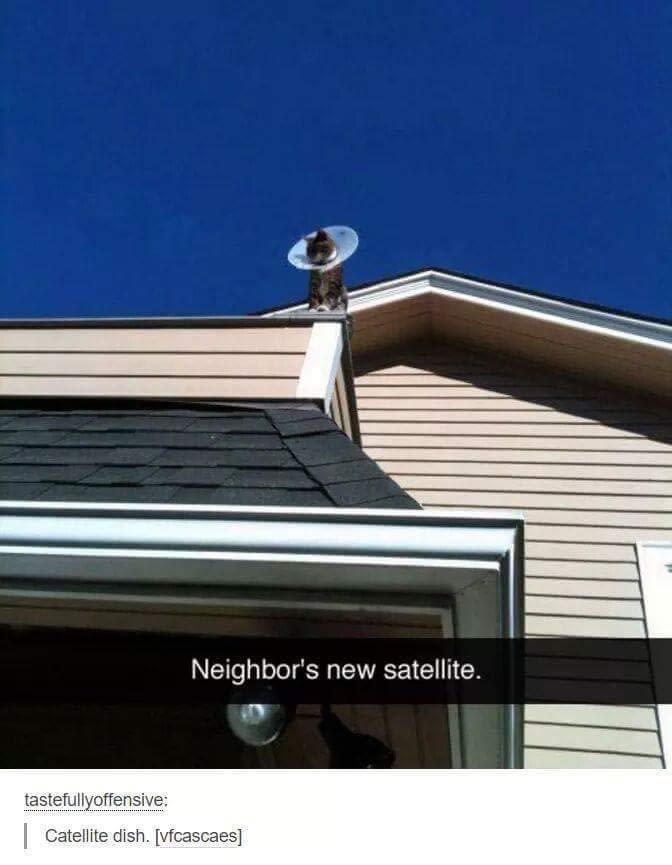 You might be having dish TV satellite on your terrace but have you seen a catellite? Here is what a catellite is; My cat acting funny and behaving like a satellite spoiling my neighbour’s dish. I am scared how many bucks I have to pay for the loss.
