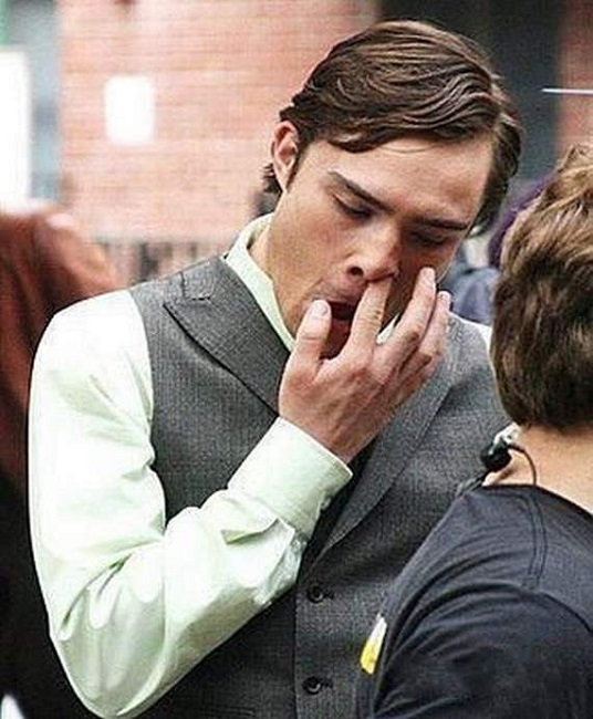 Remember when we spotted Gossip Girl’s Chuck Bass picking his nose in public. Ed might be all British smoothness on camera, and sometimes off-it, but he was once pictured picking his nose on the sets of one of his films. And that photo went on to become seriously public.