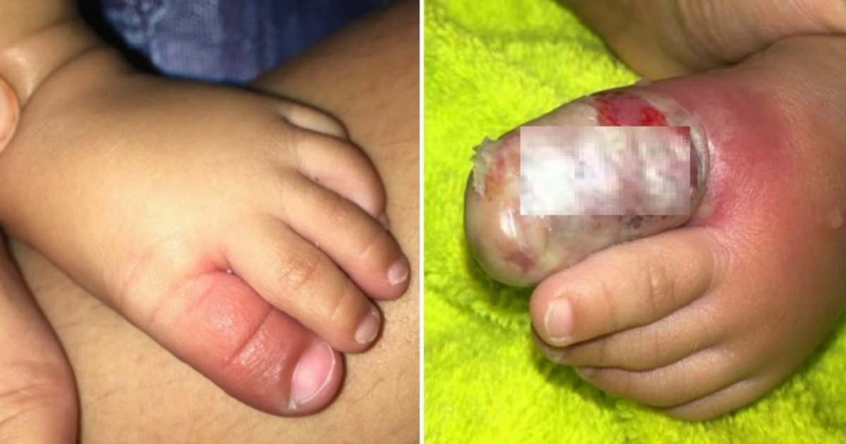 Babies are one of the most beautiful god’s creations and there is no doubt it. They are so cute that most of people are not able to resist themselves from kissing them. However, doctors generally suggest people to avoid kissing babies. There is also a mother who is warning others against a viral infection that may hit babies if they kiss them. The photos show a red rash on baby’s toe.