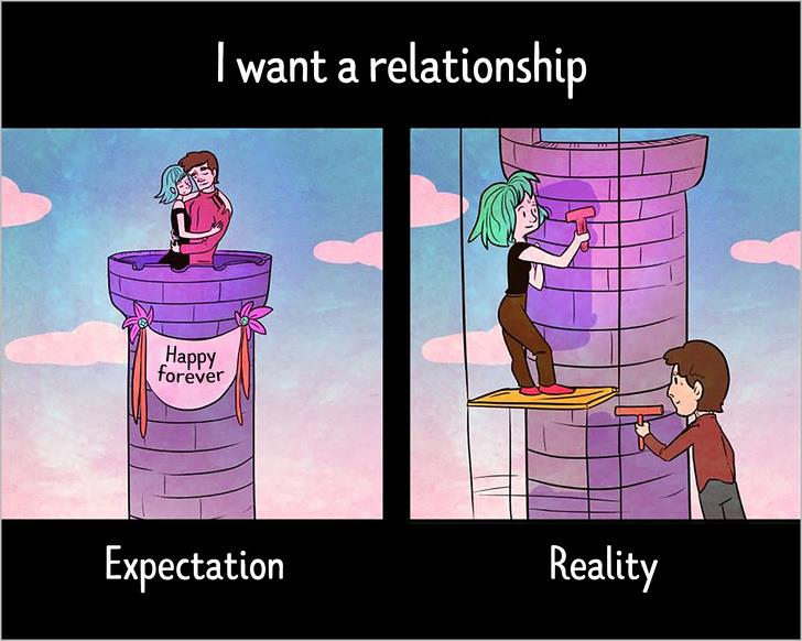 The expectations that most people keep out of a relationship are almost always broken simply because they think that getting into a committed relationship guarantees all the happiness of the world. What they fail to realize is that being in love and being in a relationship needs dedicated hard work from both the partners.