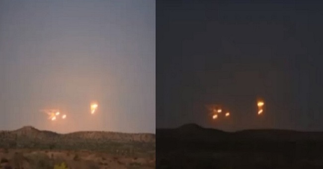 He passed it off as a probable meteor and continued driving for an additional three hours after which the lights had gone. However they reappeared again which didn’t seem normal. His location was between Parker and Quartzite Arizona. It was then that he decided to pull out his camera and tripod to shoot some photos.