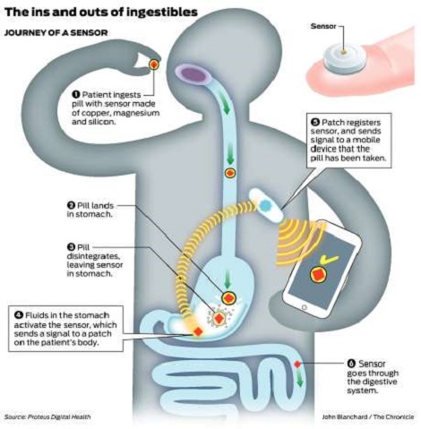This is why health and medical researchers have been trying for years to formulate a system as a reminder such as pillboxes to keep track of pills and apps or even counseling. The medication tracking ingestion system or digital sensor pill is by far the most advanced and efficient means of tracking medication or medication adherence because a pill giving you information while in your stomach is much better than a bottle telling you what to do.