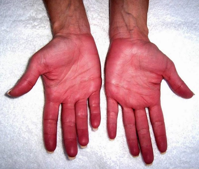 Rheumatoid Arthritis is also a medical condition signaled by red palms. If you notice your palms redder than usual and for several days, you need to find out why. Switching to a healthier diet and reducing alcohol may help.