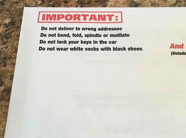 Do all mailmen and courier guys bother to follow instructions on a packet especially when you are mailing photos or something that shouldn’t bend?? Well, the packets go through sorting first so this is bound to get their attention. Life advice is good for everybody.