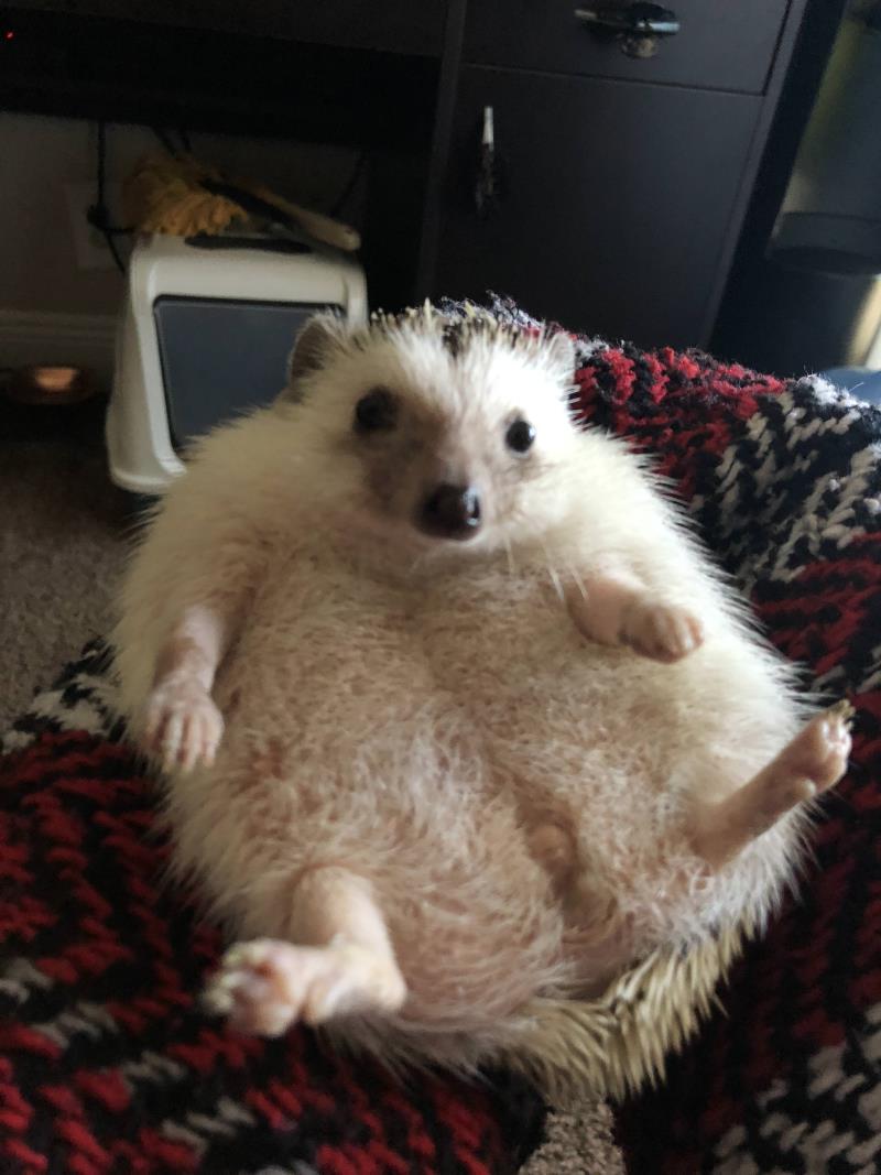 This photograph was uploaded to a social platform and the hedgehog's name is Gemini. Hedgehog, unlike other mammals, give only one large baby instead of a litter. They remain pregnant for at least 7 months.
