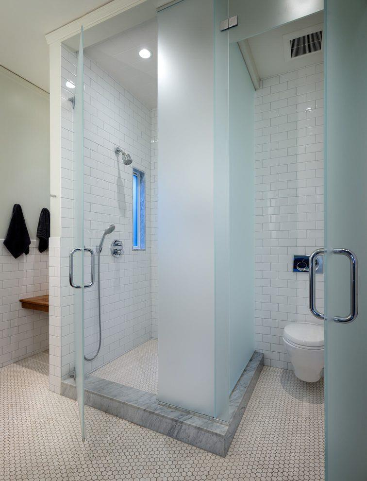 If you have 5 feet wide bathroom, you can skip using the shower door. You can opt for a glass panel instead. With this, it can keep the water from your shower. This can also free up the elbowroom needed.