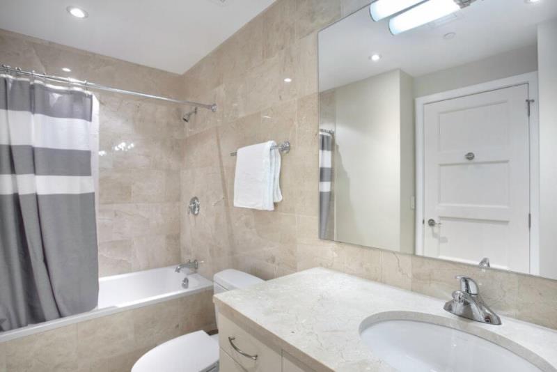 Apart from installing a mirror for vanity, you can also let it stretch across the wall. With this, two persons can use it at once. In small space conditions, every inch will help you with your activity.