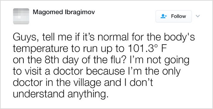 The big question here is if this guy is really a doctor as he is claiming to be and that’s the big question. Wouldn’t a doctor know what happens in the flu as it is of course very common unless he’s being funny?