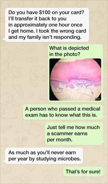 4 “They tried to scam me from my roommate’s account but I fought back.”
