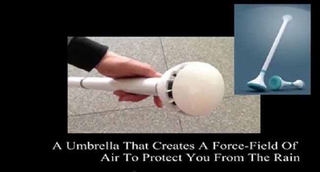 This umbrella doesn’t need a top; it creates a force field of air that prevents rain getting to you.