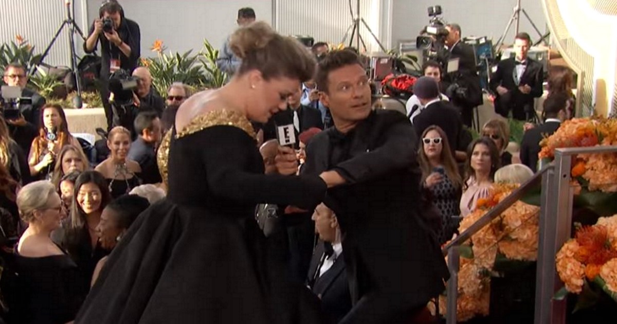 1Kelly was doing interview at the Golden Globes red carpet