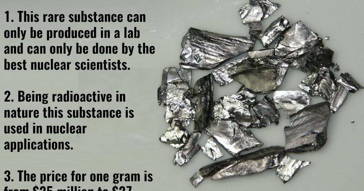 This rare and extremely radioactive material is used in science and military work for example creating nuclear weapons. It is heavy yet a very fragile substance of a silvery-white colour. The current price is $4,000 per gram.