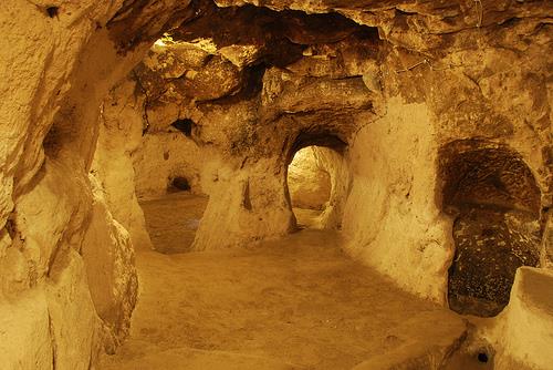 The much fabled Derinkuyu Underground City is located under the town and district of Derinkuyu in the Nevsehir province of Turkey. It is 40 kilometers away from Goreme, a town famous for the fairy chimney rock formations.