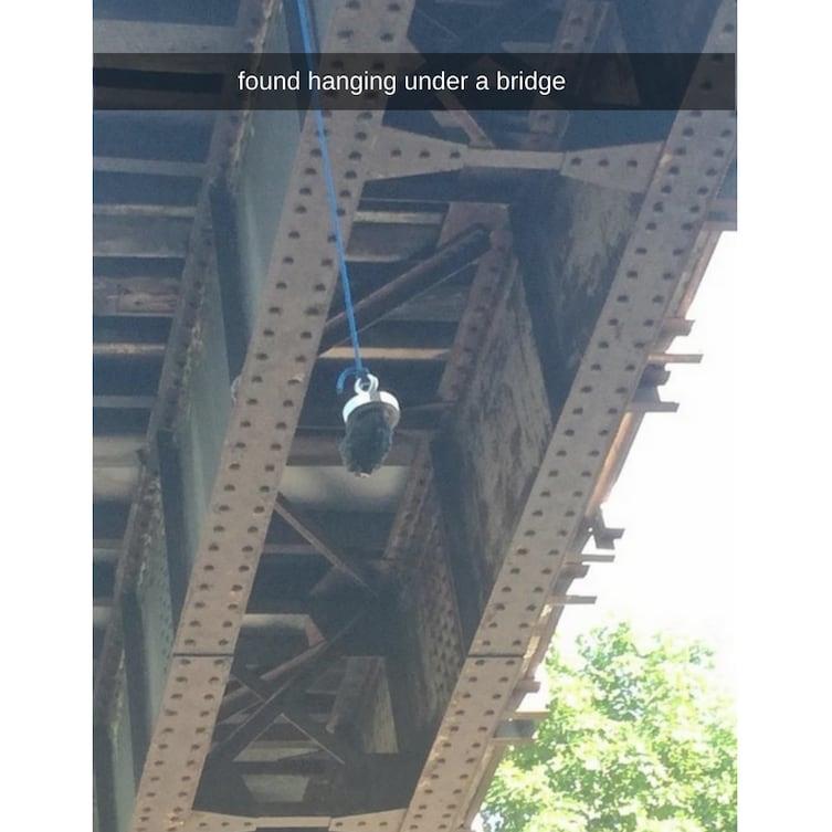 If you see something like this under a bridge, it means that someone is doing magnet fishing or magnetic fishing. It can be called as an attempt to search for ferromagnetic objects which can be pulled with the use of neodymium magnet in the outdoor waters. This is a hobby prevalent among the celebrities.