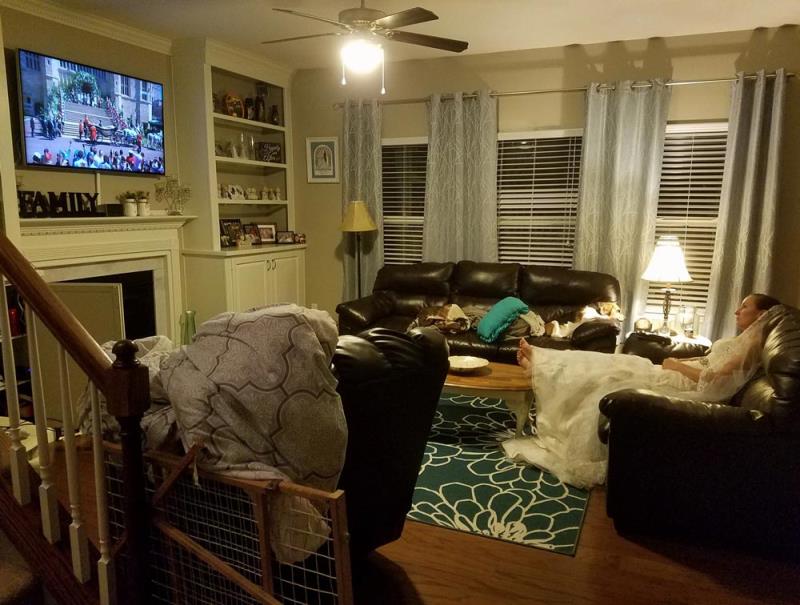 Most men don’t really care much about weddings in general. They don’t care about the flowers, cake or the fireworks either. But women are different. As you can notice in the picture above, this husband captures his wife watching the Royal wedding in her wedding dress.
