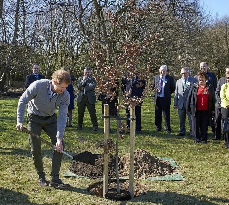 The Royal family cares about the environment as we all should! As you can notice in the picture above, Prince Harry is making sure that our Planet is filled with trees. He probably just threw few shovels for the media but thought truly matters in this case.