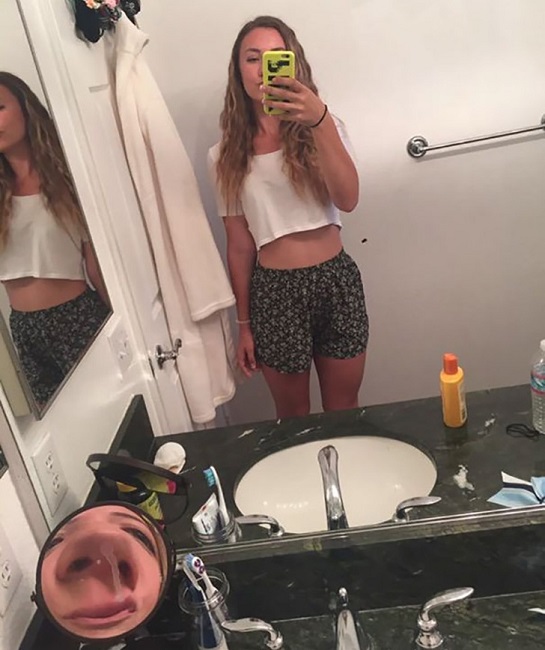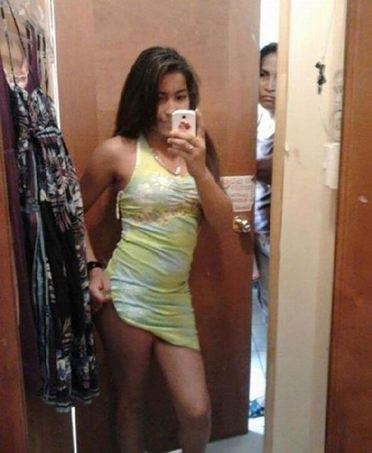 This girl really looks cute. She has beautiful eyes and a great smile. But if you look closely in the right mirror behind, you’ll notice how some dudes are not that into beautiful eyes and a great smile. She probably noticed the detail the made her picture viral, but it was too late.