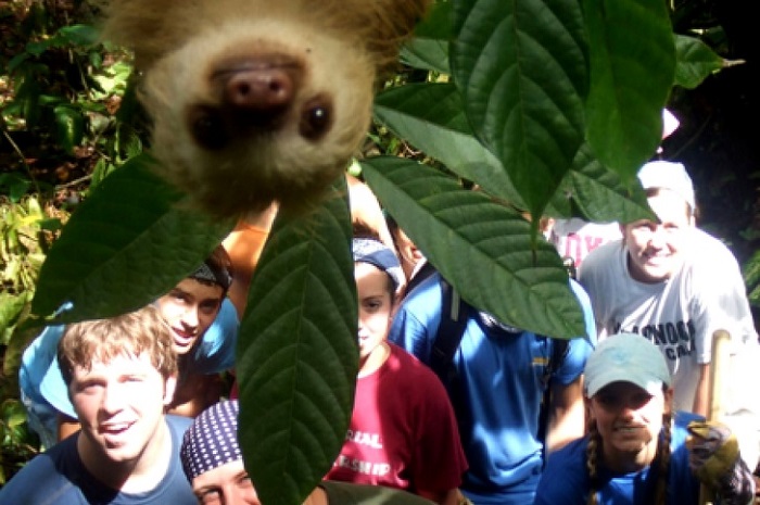 You’ve just been photo-bombed by the slowest and the laziest animal on Earth. But it’s also super cute so no one really mind the little guy. The people in the background probably had no idea that a hanging sloth will be the star of the selfie.