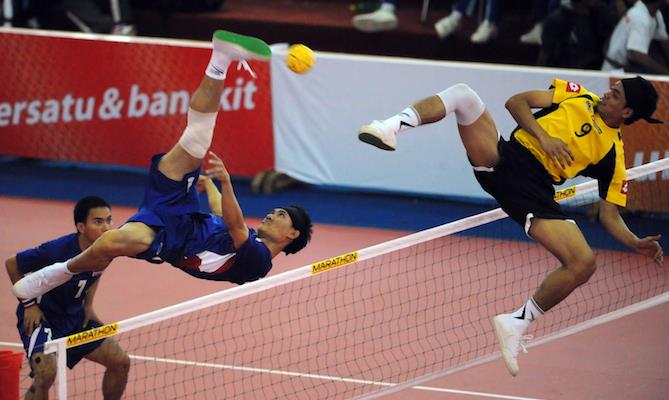This sport is a mix of volleyball and football and it is gaining popularity in Southeast Asia. The players use their legs, head, knees and chest to hit the ball and send it to the other court. Softwood is used to make the ball and as per the International Sepaktakraw Federation, nearly 100 teams from all over the world take part in the competitions organized by them.