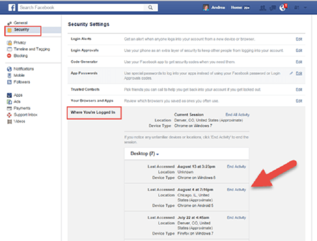 But thanks to this amazing feature you won't have that kind of problems anymore. Just find security settings on your device. Find the "Where You're Logged In" tab, click "End Activity" and you will be logged out instantly. Thanks to this setting you don't have to worry anymore about your privacy being exposed to someone else other than yourself.