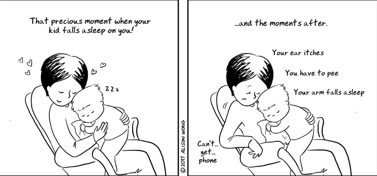 We are paying a tribute to the motherhood with 20 photos showing the problems faced by a mother but presented in a comic style: