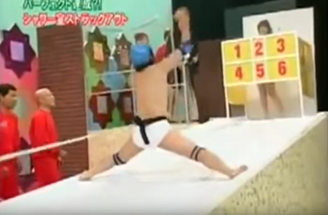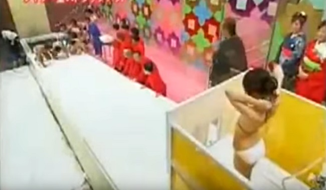 In this bizarre game, male contestants are given series of struggling and hard tasks. When they complete it, they get to see a naked girl standing behind a board. The contestants are required to throw bean bags on the numbered boxes on board. Once they hit it, the numbered boxes are removed.