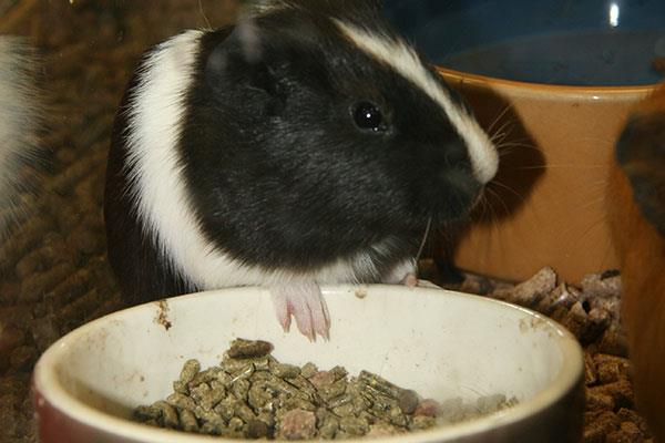 Pellet food is made from timothy hay, and is specially formulated to fill in any nutrient gaps, with added minerals and Vitamins A and C. It’s important to note, however, that even though pellets contain hay, they are not a substitute for it! Guinea pigs generally eat about ? of a cup of pellet food a day.