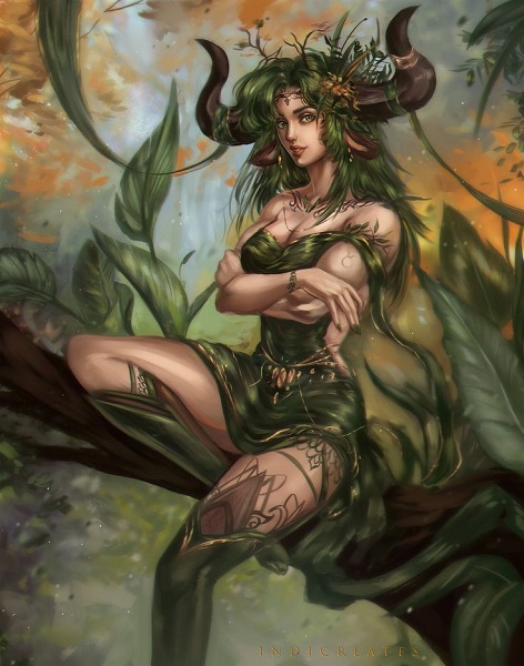 The divinity of the woods is the fairy-like dryad; they are forest spirits who are eternally bound to the trees. Taurus, the earth sign, is always in tune with nature. A Taurus exudes dryad strength as they guard their wooded home with unwavering loyalty and heal all who seek it.