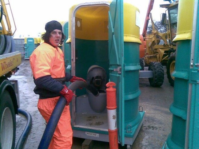 If you've ever met a toilet cleaner you'd see that they are not very fond of their jobs. For obvious reasons. But you know what's worse than cleaning toilets? Cleaning portable toilets which are often overflowing. Also known as port-a-potties, these are the toilets you find when you're outside at a festival or at a line somewhere. These men are just handled a tank and a vacuum and we'd guess each if them even have to clean more than one toilet.